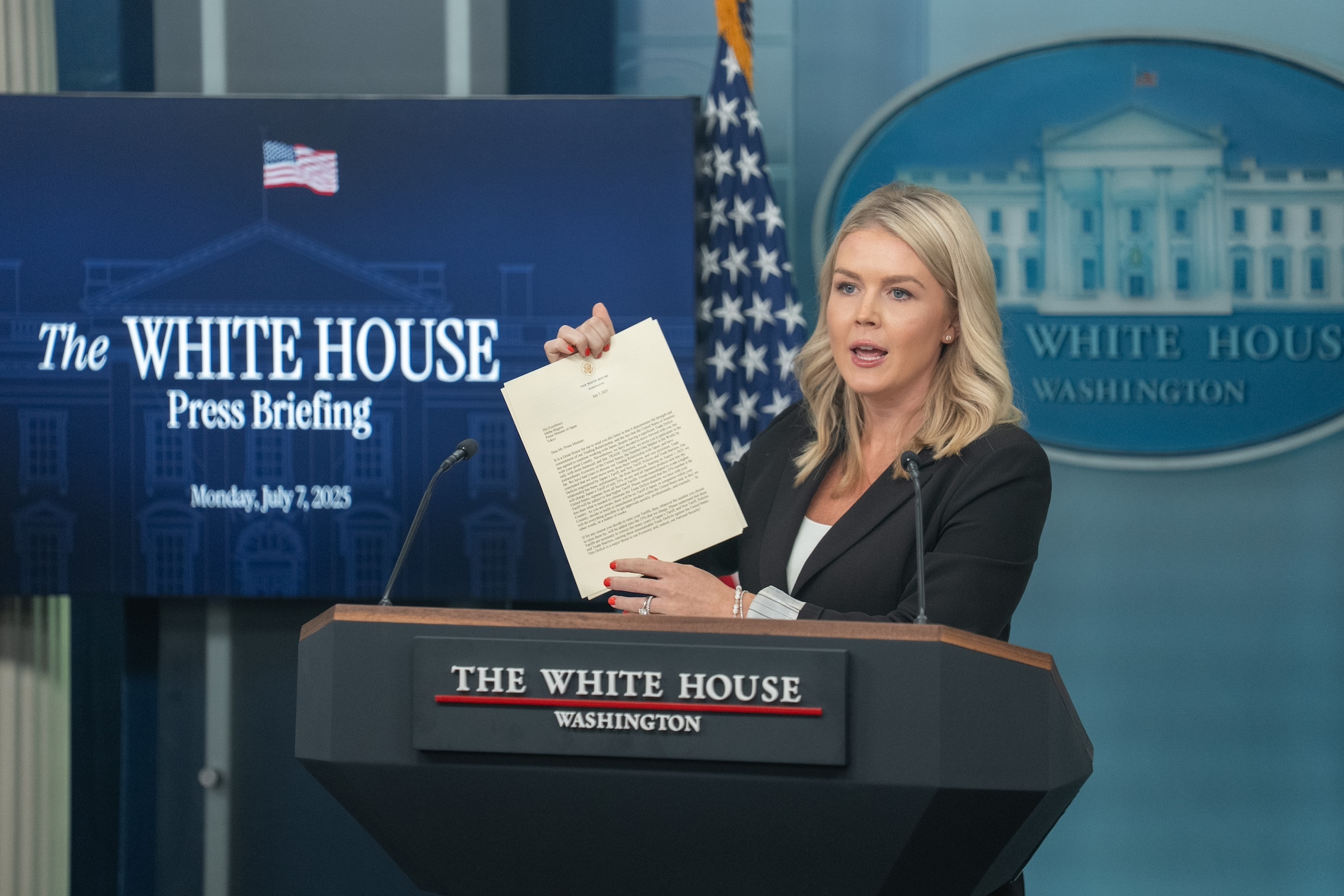 美国白宫新闻发言人卡罗琳·莱维特7日下午在记者会上证实,美国总统特朗普计划签署行政令,延长“对等关税”90天暂缓期,将实施时间从7月9日推迟到8月1日。新华社发