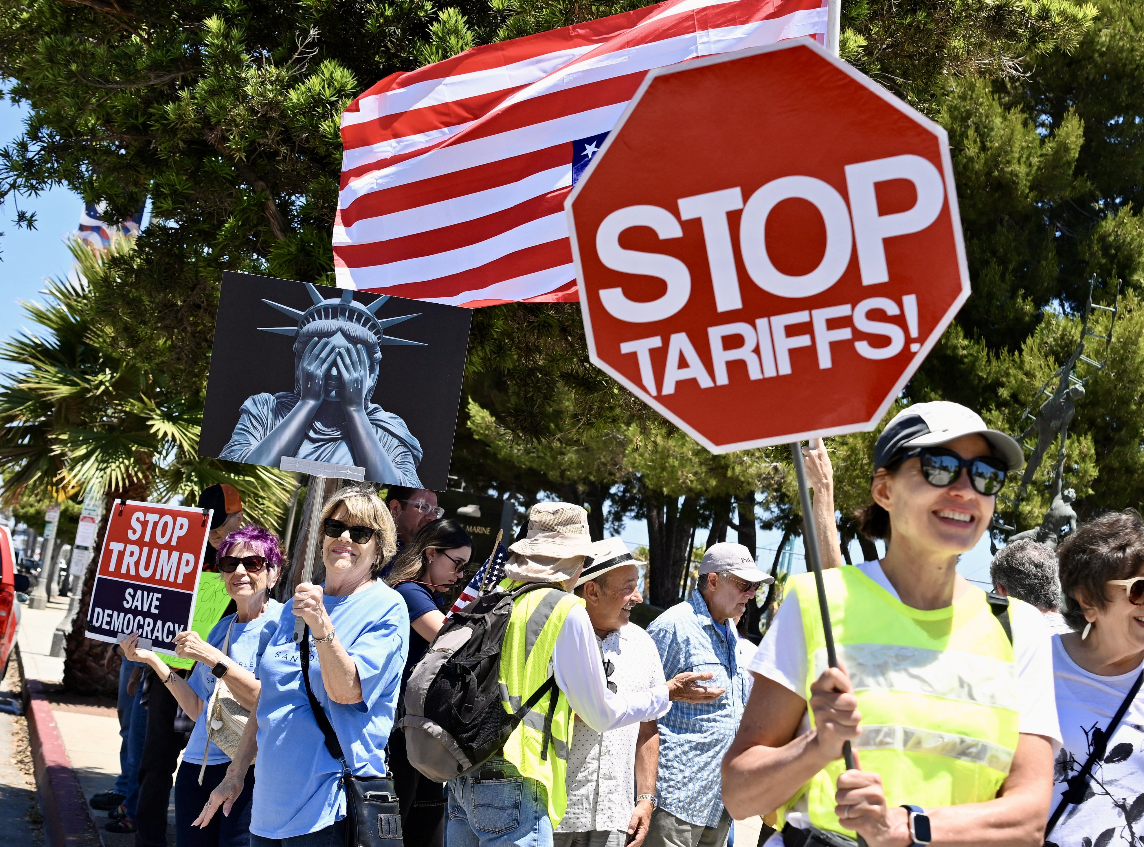 民众在洛杉矶港抗议美国关税政策。CFP供图